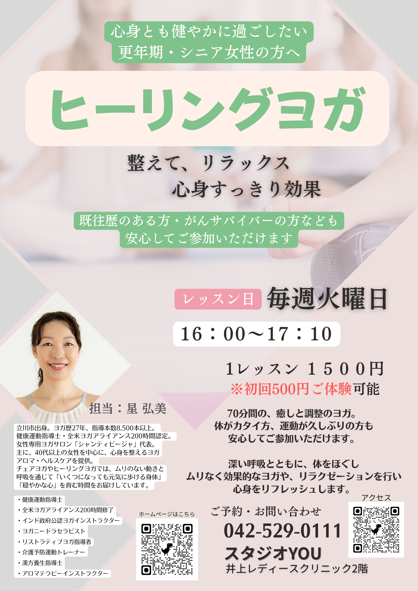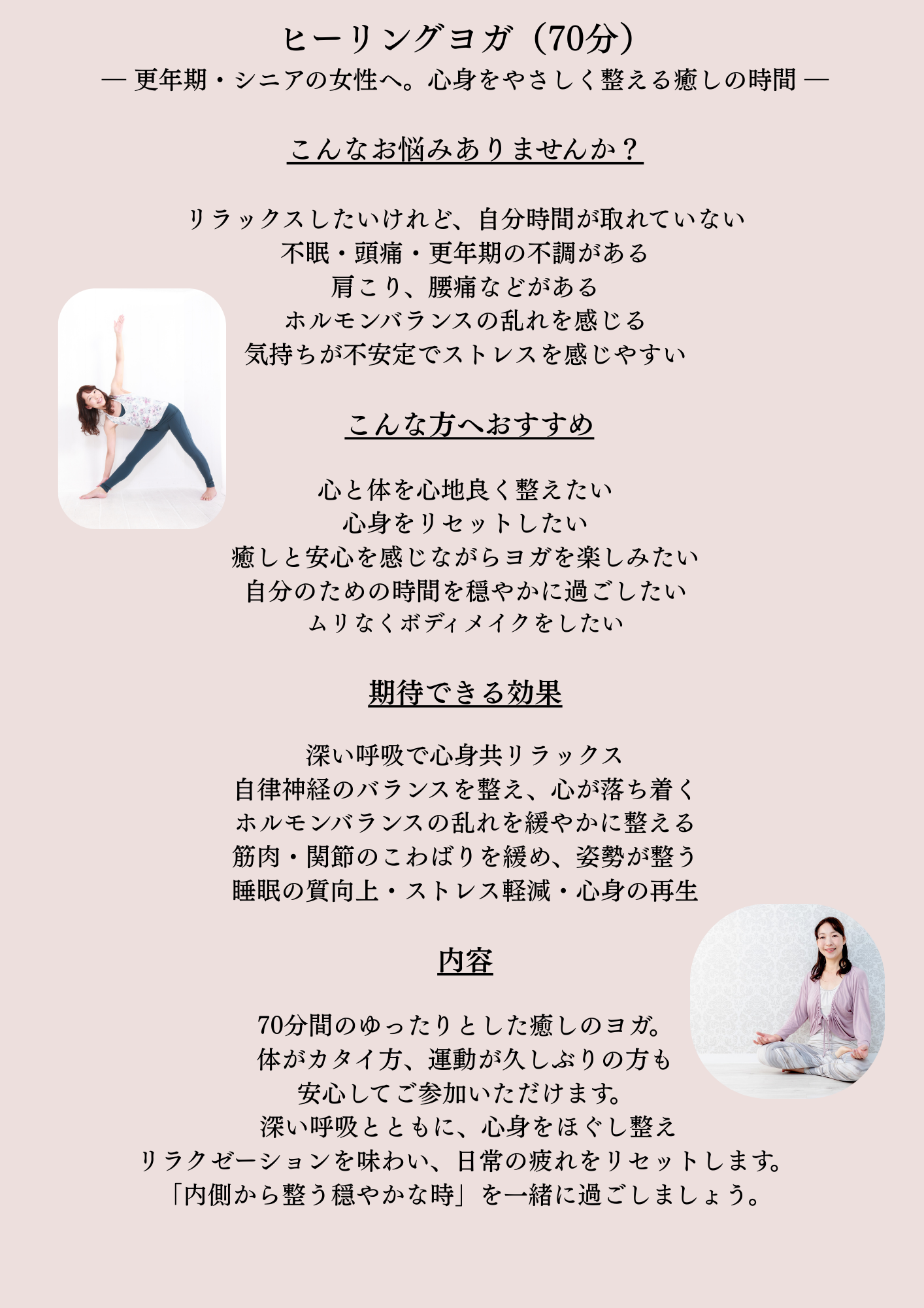 ①「ヒーリングヨガ70分」