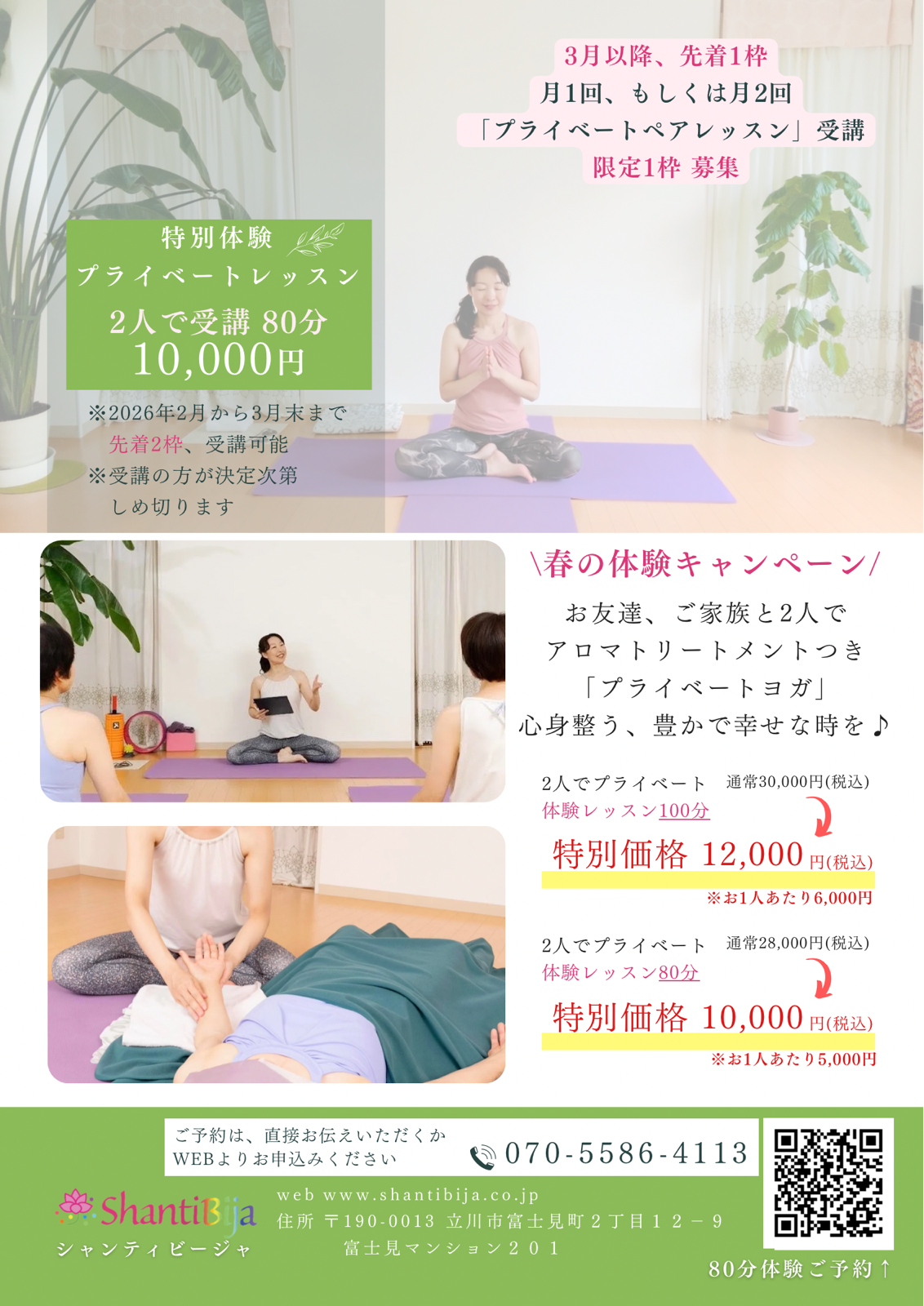 2人で受講♪アロマトリートメントつきプライベートヨガ【限定2組】